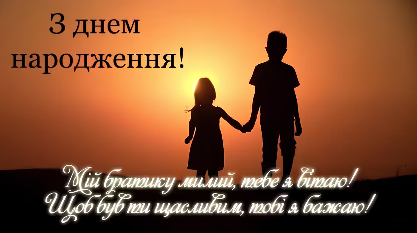 Вітаю тебе, брате! Ти для мене приклад стійкості й сили характеру. Бажаю, щоб усі твої плани реалізовувалися без зайвих перешкод, а труднощі лише загартовували. Нехай у душі буде спокій, у серці — світло, а в житті — надійні люди. Я завжди підтримаю тебе, що б не сталося.